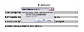 13. Если страницы у нас, куда-то, «убежали» в содержании (оглавлении), оно возвращаются на место. Если мы изменили содержание (оглавление) отмечаем «Обновить целиком» и нажимаем ОК – все содержание (оглавление) меняется, включая страницы.