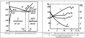 Для измельчения структуры эвтектики и устранения избыточных кристаллов кремния силумины модифицируют натрием (0, 05-0, 08%) путем присадки к расплаву смеси солей 67% NaF и 33% NaCl. В присутствии натрия происходит смещение линий диаграммы состояния и заэвтектический (эвтектический) сплав АЛ2 (11-13% Si) становится доэвтектическим. В этом случае в структуре сплава вместо избыточного кремния появляются кристаллы α-твердого раствора. В процессе затвердевания кристаллы кремния обволакиваются пленкой силицида натрия Na2Si, которая затрудняет их рост. Такие изменения структуры улучшают механические свойства.